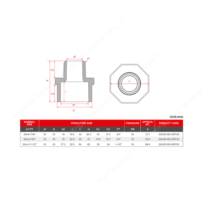 SIZE : 20mm*3/4",32mm*3/4",50mm*1-1/2"